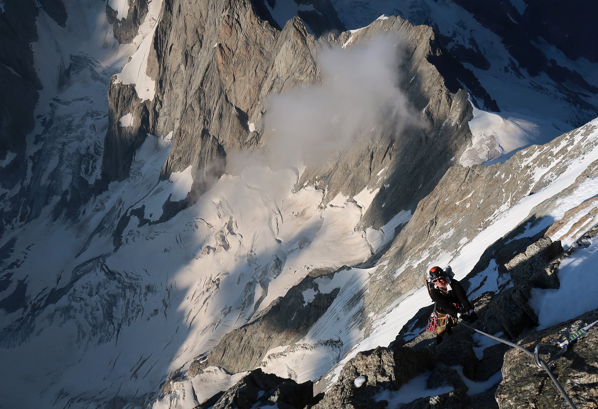 Climbing the Walker spur, Cassin route, in Grandes-Jorasses North Face.