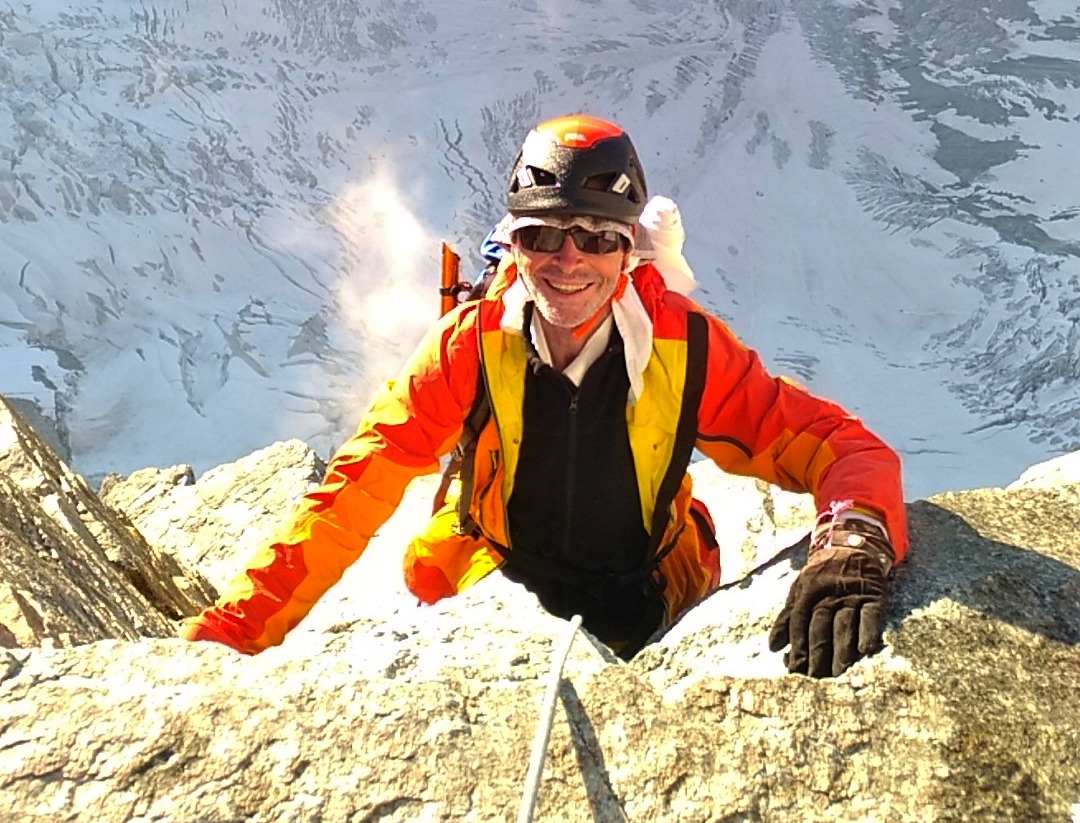 Climbing the Walker spur, Cassin route, in Grandes-Jorasses North Face.