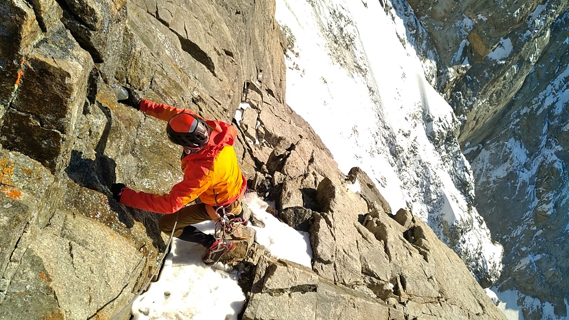 Climbing the Walker spur, Cassin route, in Grandes-Jorasses North Face.