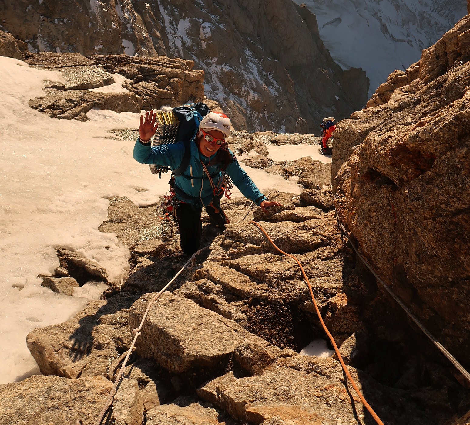 Climbing the Walker spur, Cassin route, in Grandes-Jorasses North Face.