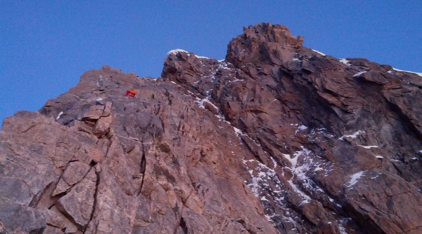 Climbing the Walker spur, Cassin route, in Grandes-Jorasses North Face.