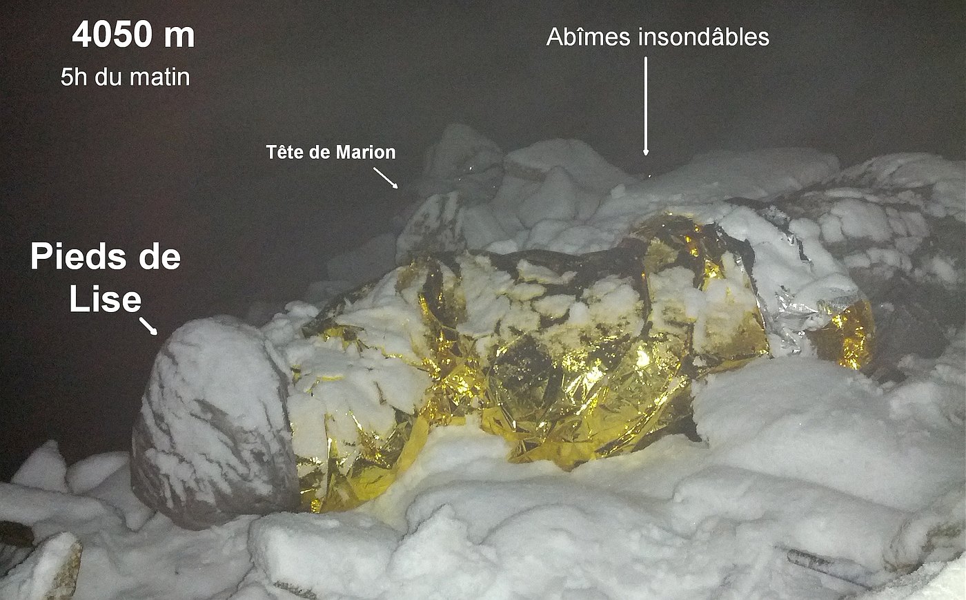 Marion et Lise invisibles dans leur duvet sous la neige