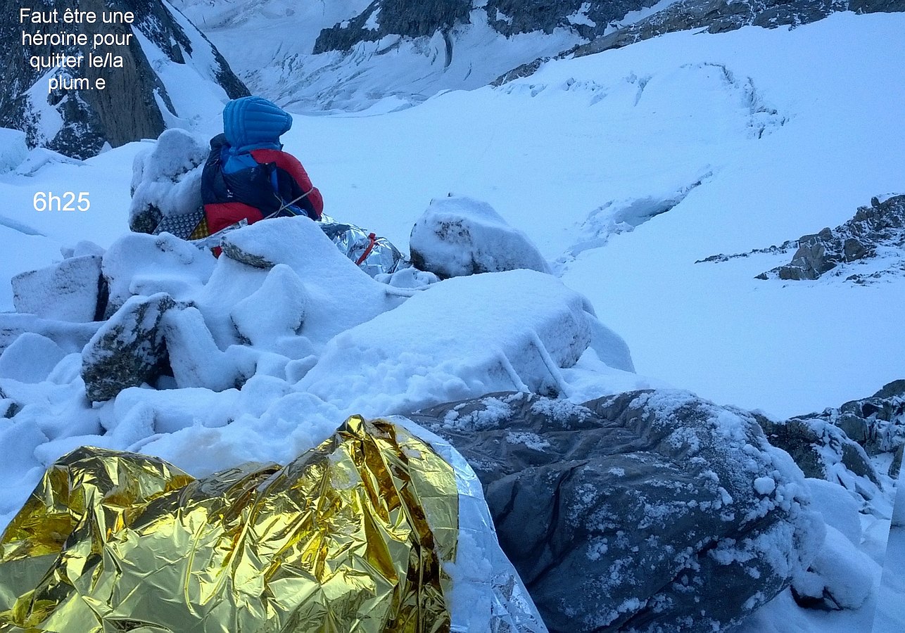 and beginning the way down: Bivi at approx. 4050m ; July 19, descent to Boccalate and Planpincieux, Italy