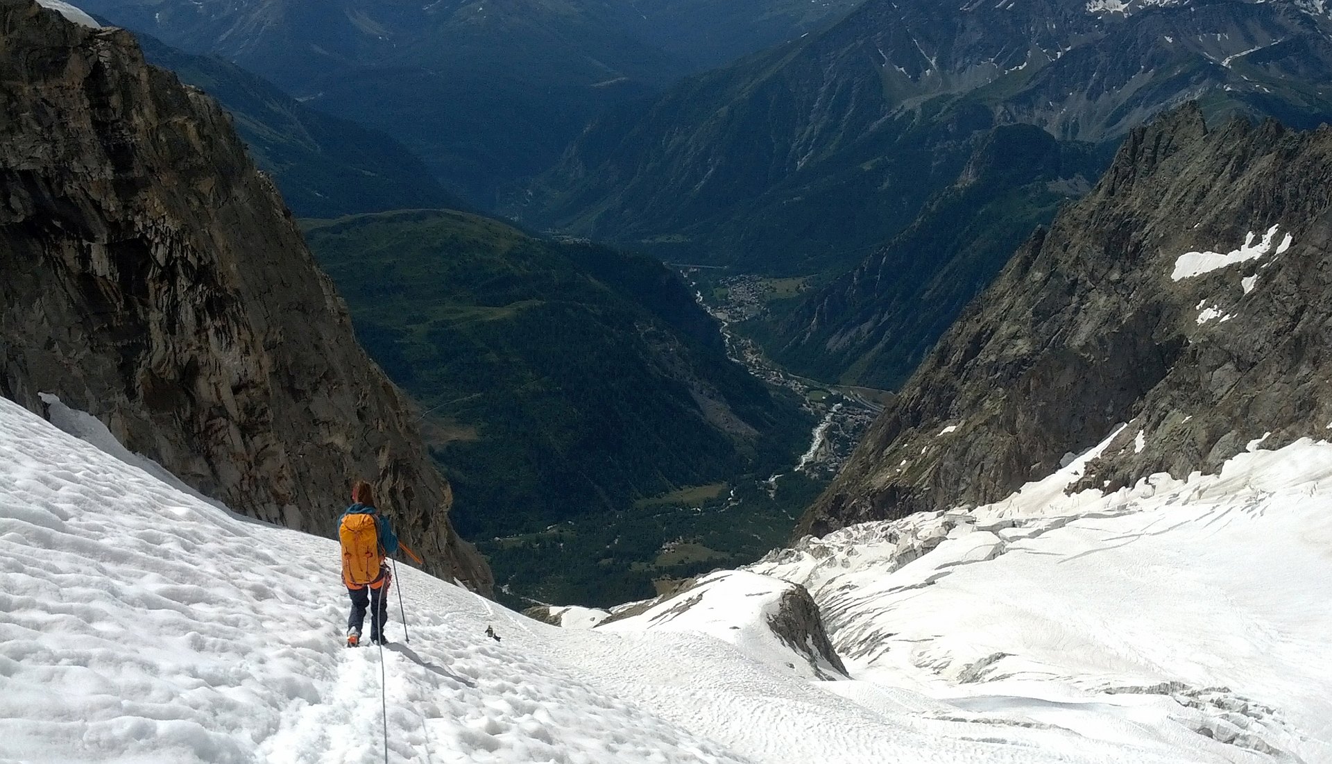and beginning the way down: Bivi at approx. 4050m ; July 19, descent to Boccalate and Planpincieux, Italy