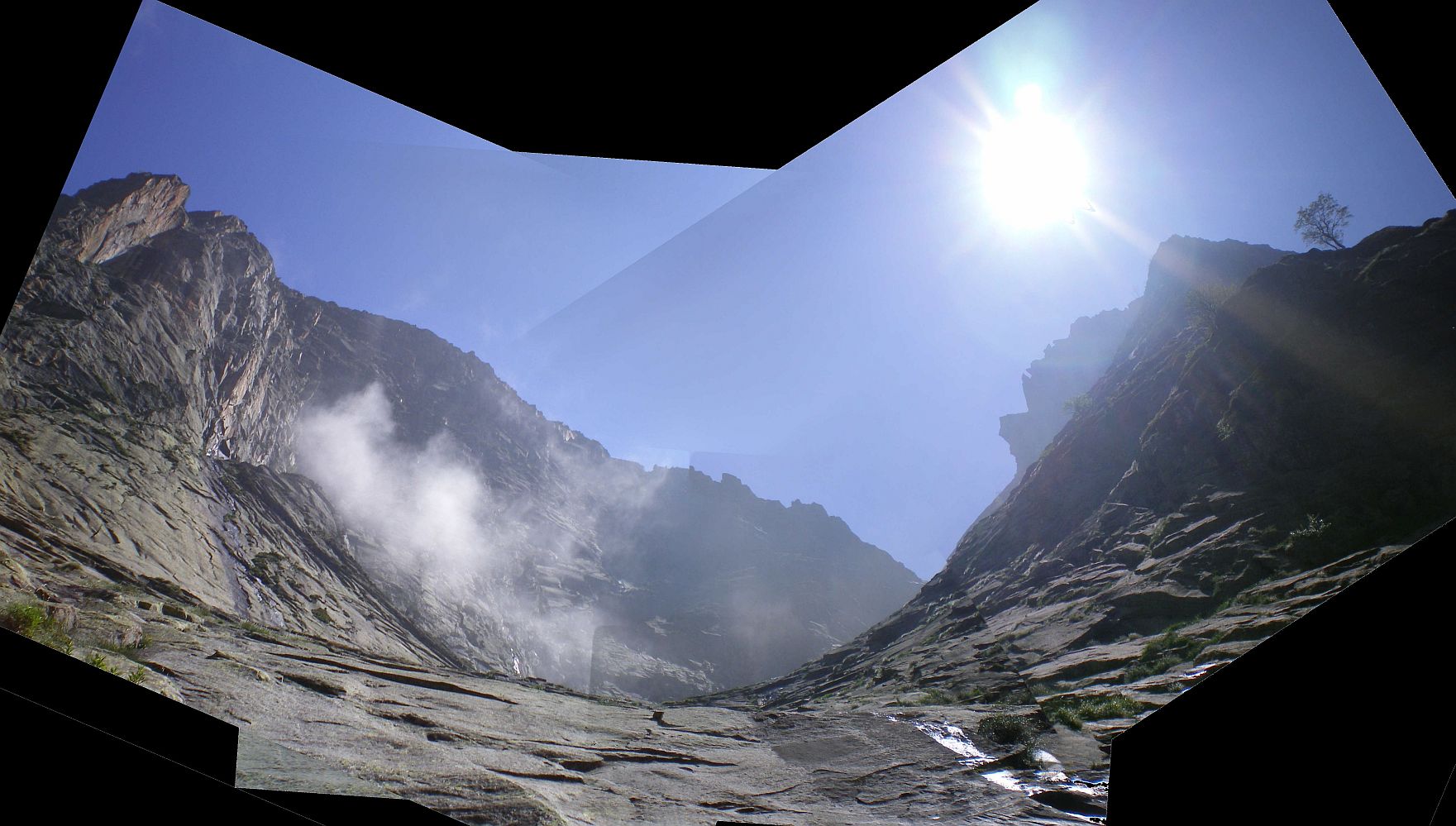 Remarques: la voie est fraîche (tout à l'ombre sauf Taillante). On peut boire de l'eau à gogo sur les dalles R10-R13. Si on suit les clous, on part L1 vers le haut, on tourne ensuite. Si on part tout de suite à gauche, il n'y a pas de clous, et faut faire L3 très horizontale à G (en solo je suis monté trop haut, j'ai du redescendre 30m). Toute la voie c'est du 4, sauf le 5a+ de L6 (crochet à G, puis mvt à D, et dulfer facile droit au dessus du relais) et un 5b dans L8 mais je crois que je ne l'ai jamais trouvé :o(