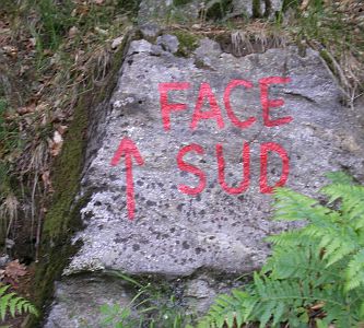 - Topo de Gérard Pouliquen, sur le site du CAF-Ariège: il est très bien (imprimer le "panorama accès" pour comprendre la structure complexe de la face Sud). Le 5b au dessus de R8 passe très bien (du 4+ ?), et les 5a ne se voient même pas: La voie me semble cotée trop chère par rapport à la face Est= à mon avis il n'y a presque que du 4 partout. Elle est très bien équipée de relais à anneau pour le rappel !