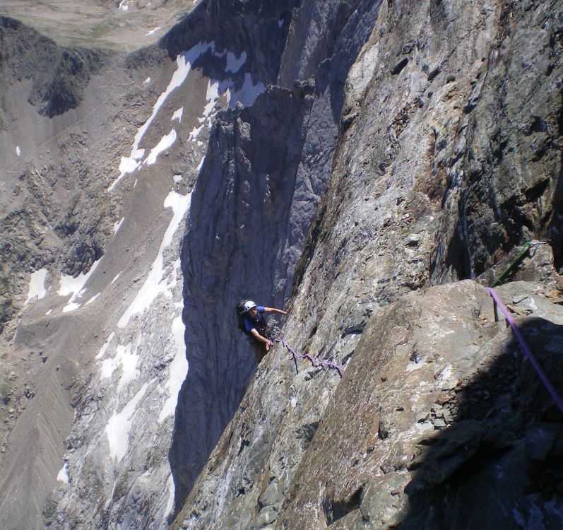 lArête Intermédiaire et lemprunter. Beaucoup de cordées montent trop haut en