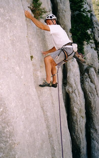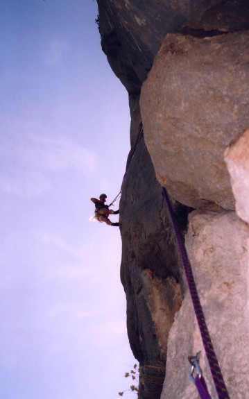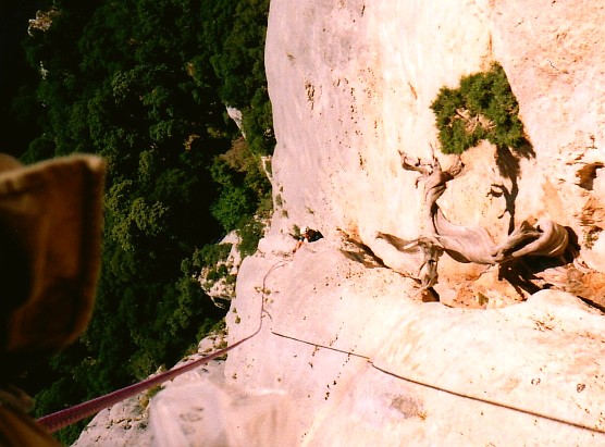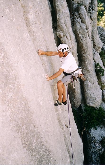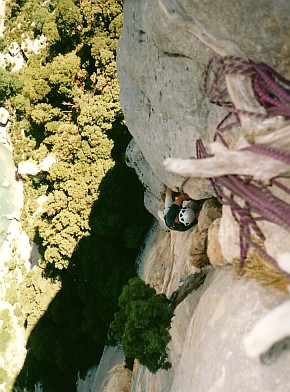 Un autre jour on va à la Malines, pour faire "la Lune aux Oiseaux". Sympa, le guide Bernard Duterte qui va faire Babouche Molle nous laisse sa statique de 150m pour descendre en rappel jusqu'en bas. Et puis on escalade ces belles cannelures, très (trop?) bien protégées.