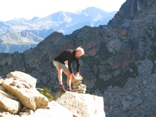 Denis Corpet fait un beau cairn (et plein d'autres), pour indiquer le passage