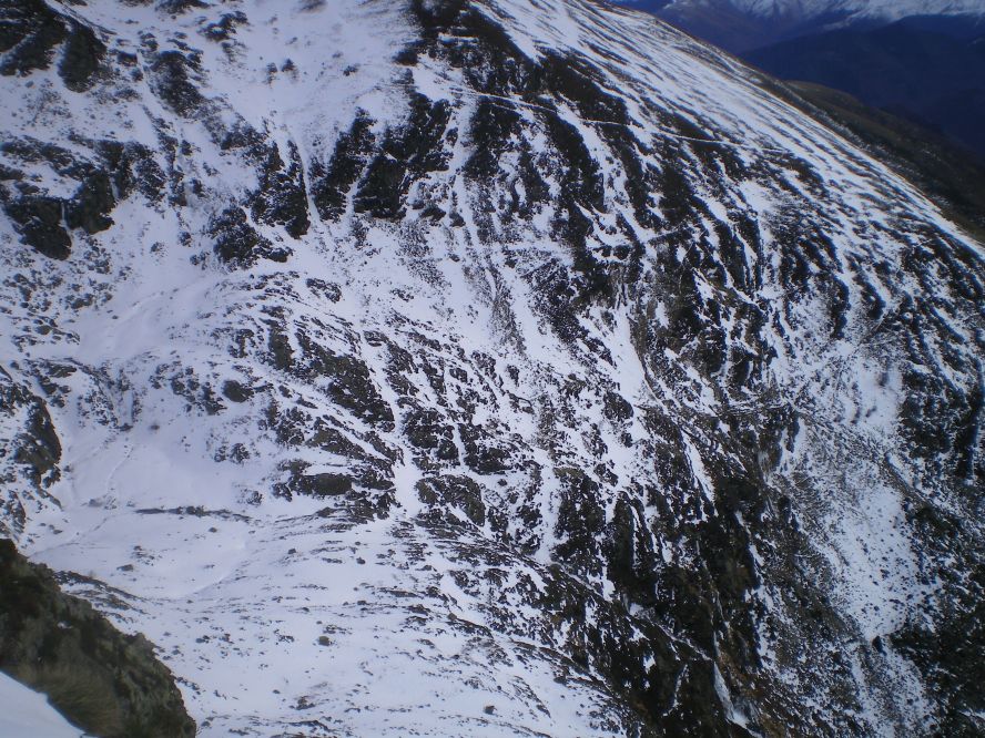 Nous y montâmes, puis suivîmes la crête S-N menant au Pic Barrès 2043 m, puis reprîmes à gauche l'ascension du Pic de Fontanette 2002m, pour redescendre enfin sur le Port de Lers. Rien de bien dur malgré deux trois passage un peu raide vu l'état de la neige et notre équipement