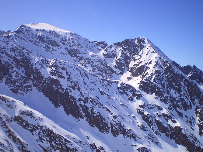Randonnée à Skis à la Pointe d'Argent 2654 m, à coté du Montcalm (Ariège, Pyrénées, France)