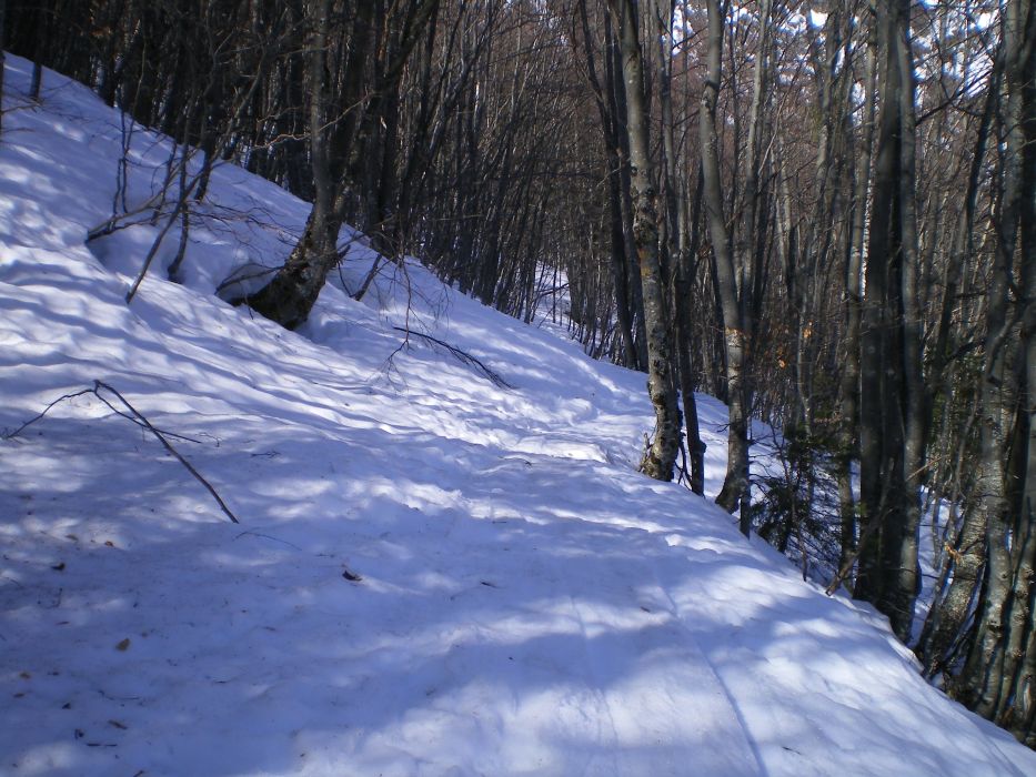 Neige très dure le matin, donc une partie faite à pied mais sans crampons,en bas dans la forêt et la raide pente terminale