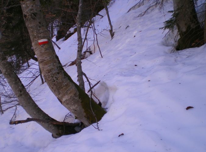 Neige très dure le matin, donc une partie faite à pied mais sans crampons,en bas dans la forêt et la raide pente terminale