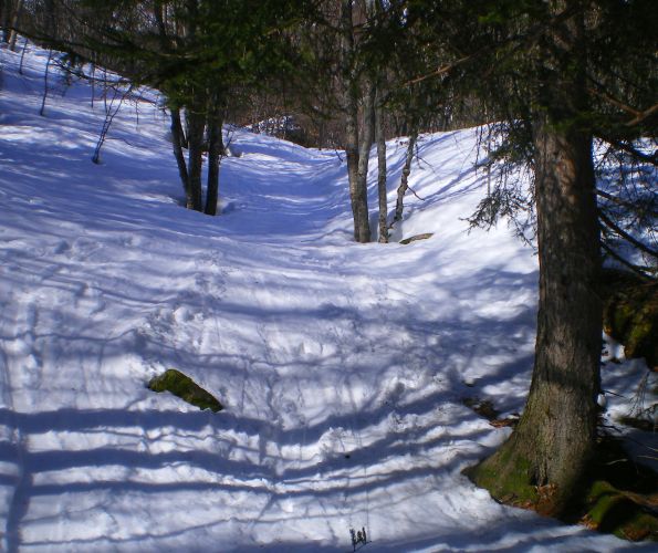 Neige très dure le matin, donc une partie faite à pied mais sans crampons,en bas dans la forêt et la raide pente terminale