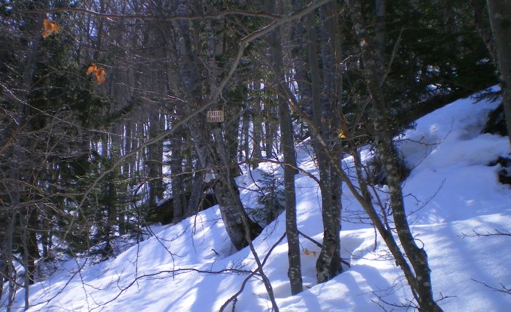 Neige très dure le matin, donc une partie faite à pied mais sans crampons,en bas dans la forêt et la raide pente terminale