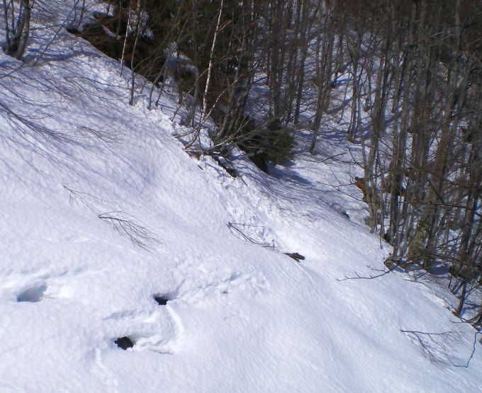 Neige très dure le matin, donc une partie faite à pied mais sans crampons,en bas dans la forêt et la raide pente terminale