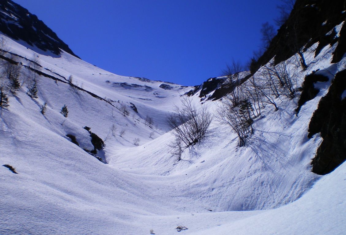 Pente terminale 650 m continus, pente moyenne 70% =35°, passages 87% =41°