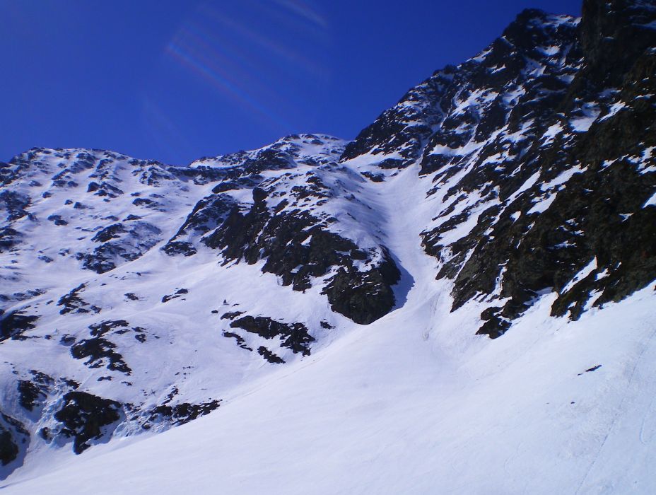 Pente terminale 650 m continus, pente moyenne 70% =35°, passages 87% =41°
