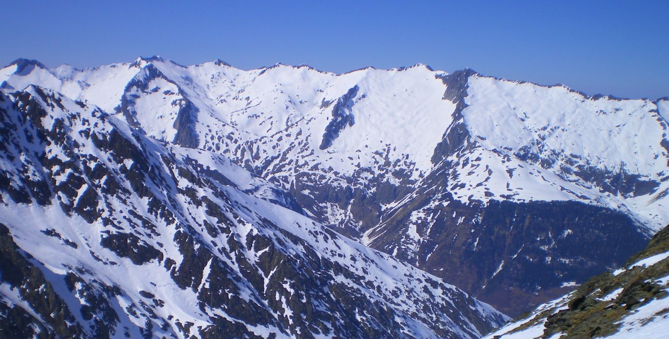 Randonnée à Skis à la Pointe d'Argent 2654 m, à coté du Montcalm (Ariège, Pyrénées, France)