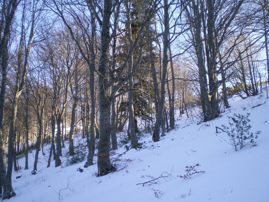 Belle neige, peu profonde: raquettes utiles, pas indispensables.