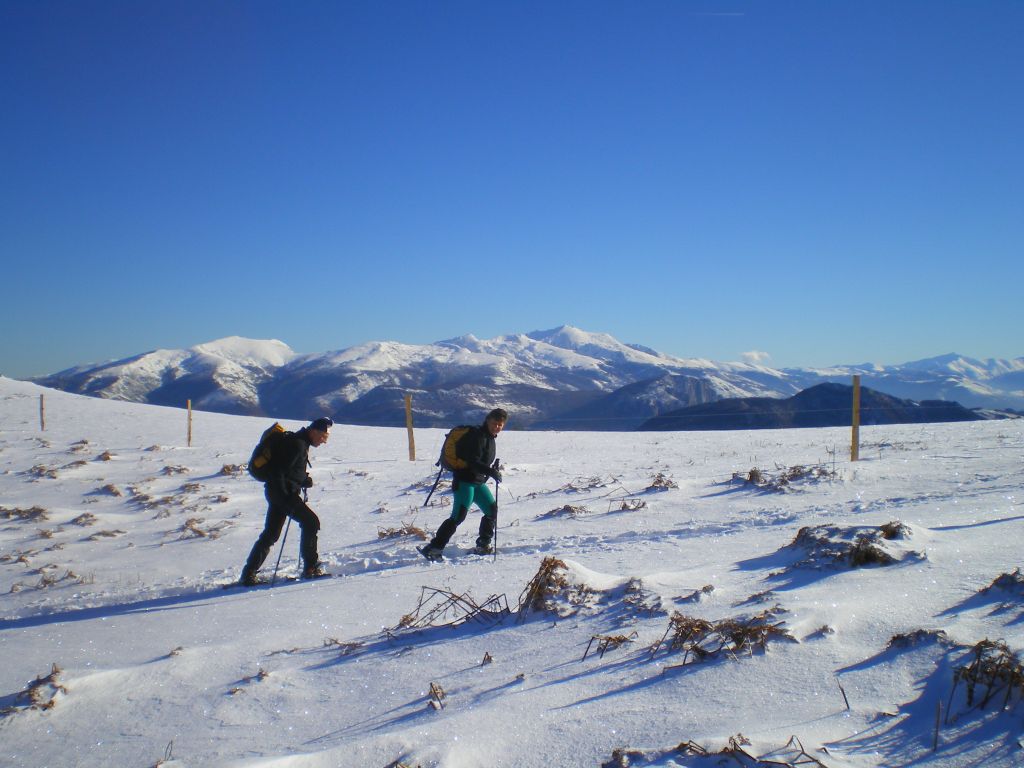 Belle neige, peu profonde: raquettes utiles, pas indispensables.