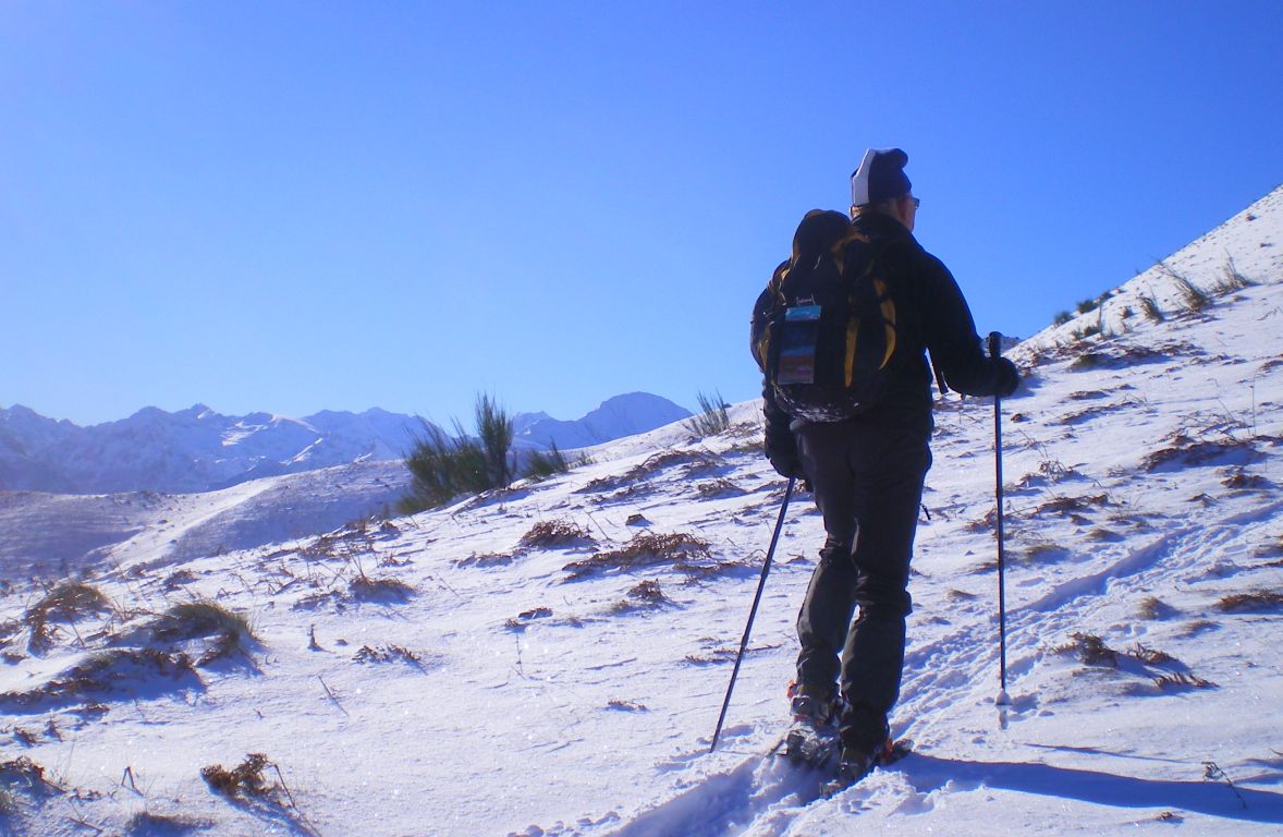 Belle neige, peu profonde: raquettes utiles, pas indispensables.