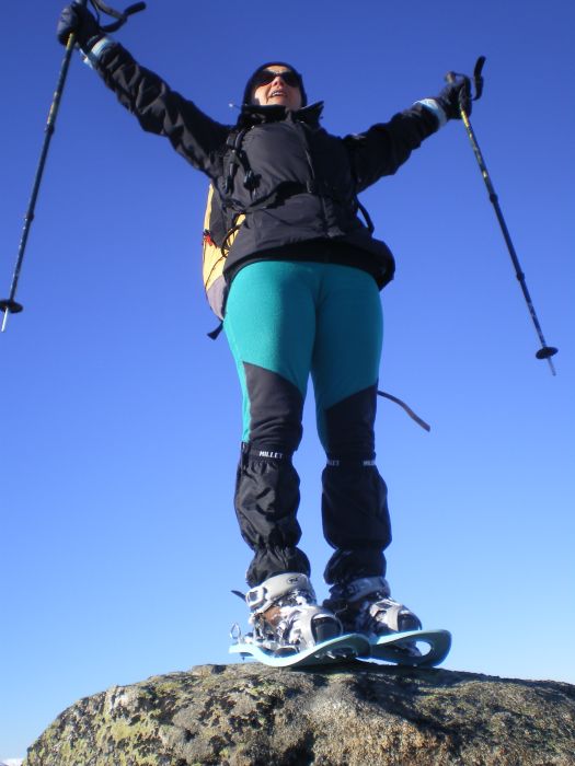 Belle neige, peu profonde: raquettes utiles, pas indispensables.