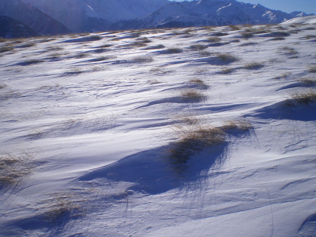 Belle neige, peu profonde: raquettes utiles, pas indispensables.
