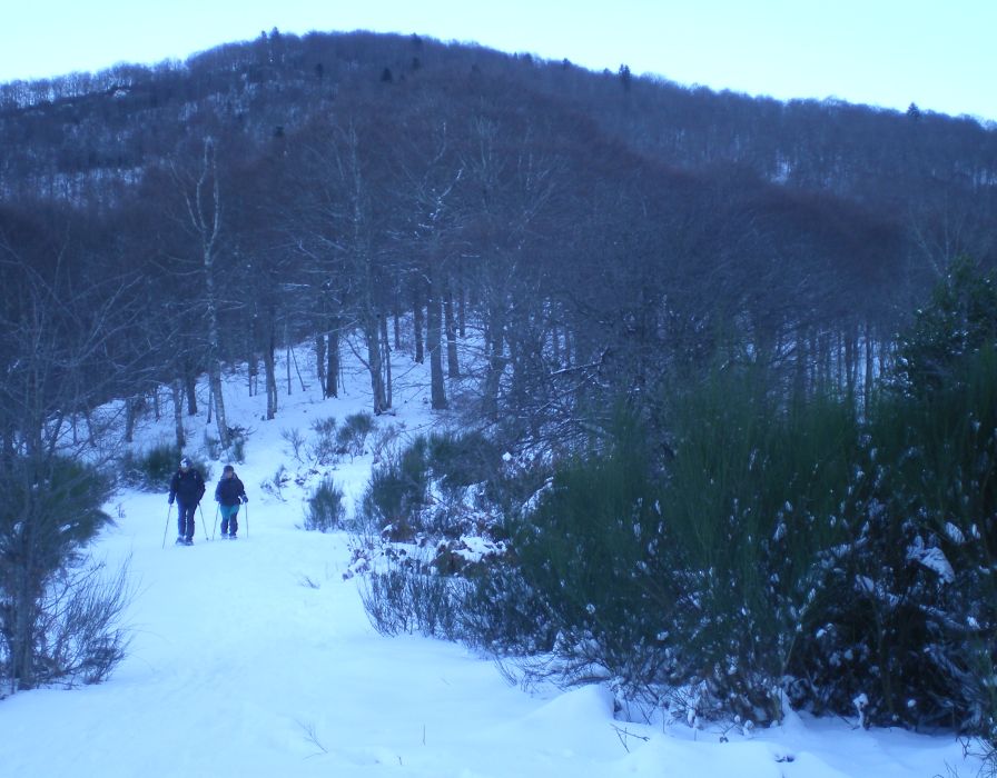 Belle neige, peu profonde: raquettes utiles, pas indispensables.