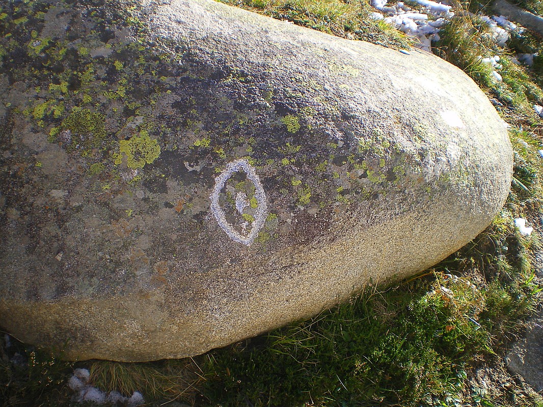 Randonnée sur un vague sentier balisé (marques jaunes sur les rochers),