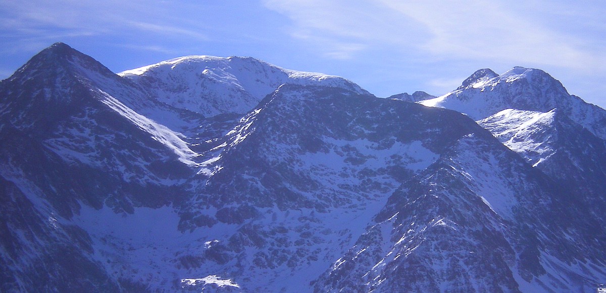 Montagne granitique enneigée, mais les arbres sont encore verts !