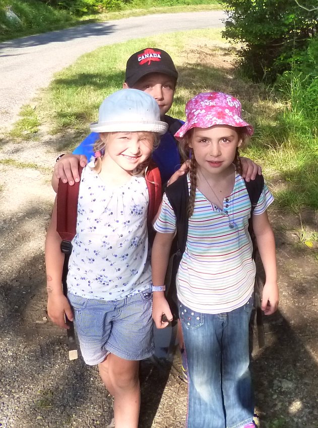 Corbières, France Sud-Ouest, 7 Août 2014, trois petits-enfants et leur Papish, Denis Corpet