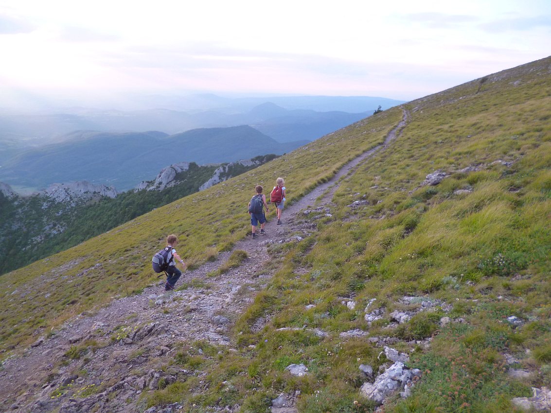 Corbières, France Sud-Ouest, 7 Août 2014, trois petits-enfants et leur Papish, Denis Corpet