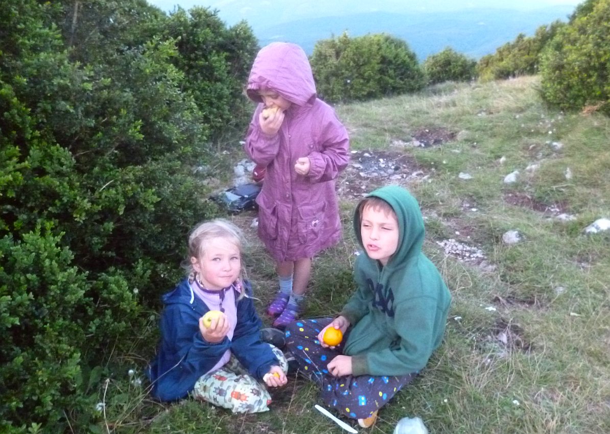 Corbières, France Sud-Ouest, 7 Août 2014, trois petits-enfants et leur Papish, Denis Corpet