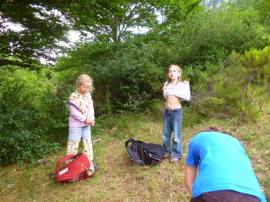 Corbières, France Sud-Ouest, 7 Août 2014, trois petits-enfants et leur Papish, Denis Corpet