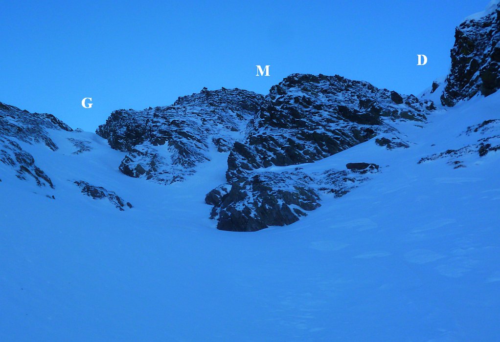 par le "Créneau d'Endron", ce beau couloir qui raye la face Nord (PD+)