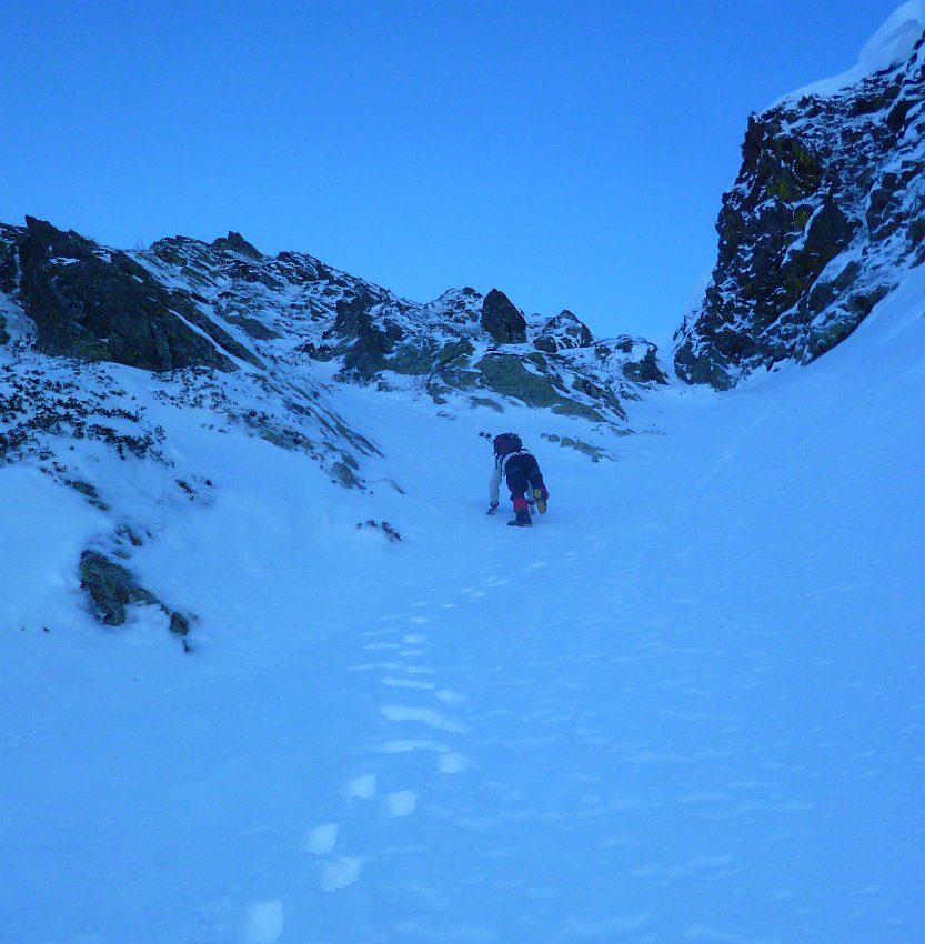 par le "Créneau d'Endron", ce beau couloir qui raye la face Nord (PD+)