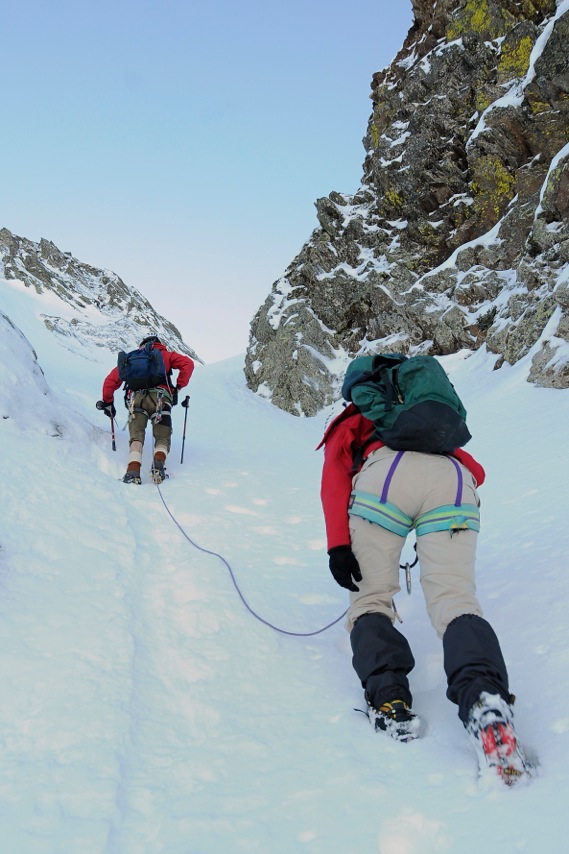 par le "Créneau d'Endron", ce beau couloir qui raye la face Nord (PD+)
