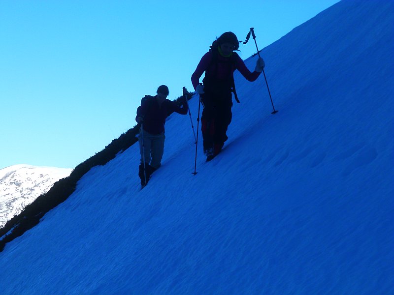 par le "Créneau d'Endron", ce beau couloir qui raye la face Nord (PD+)
