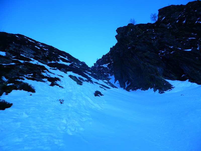 par le "Créneau d'Endron", ce beau couloir qui raye la face Nord (PD+)