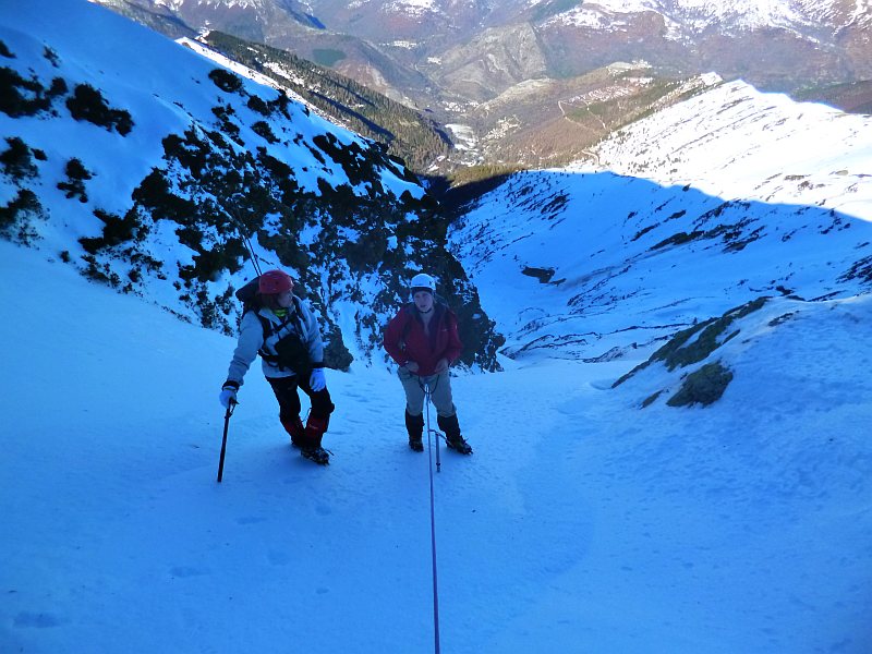 par le "Créneau d'Endron", ce beau couloir qui raye la face Nord (PD+)