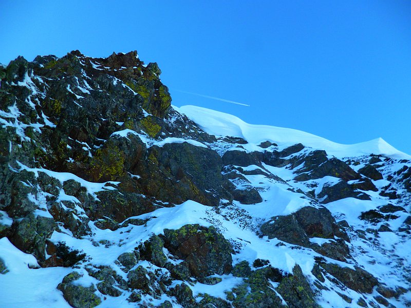 par le "Créneau d'Endron", ce beau couloir qui raye la face Nord (PD+)