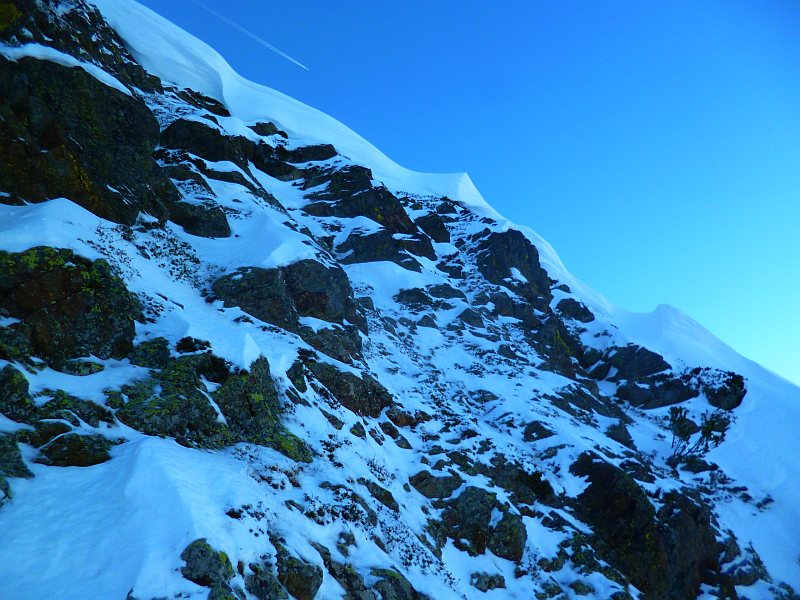par le "Créneau d'Endron", ce beau couloir qui raye la face Nord (PD+)