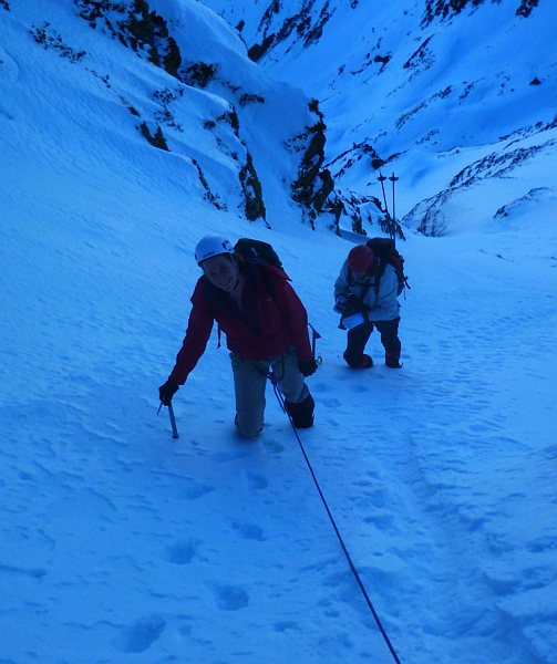 par le "Créneau d'Endron", ce beau couloir qui raye la face Nord (PD+)