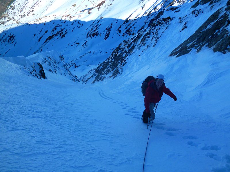 par le "Créneau d'Endron", ce beau couloir qui raye la face Nord (PD+)