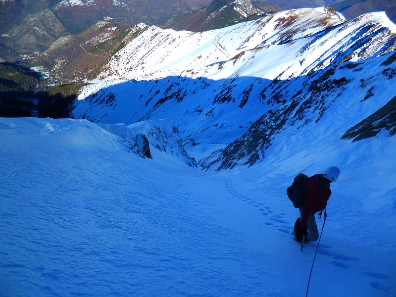 par le "Créneau d'Endron", ce beau couloir qui raye la face Nord (PD+)