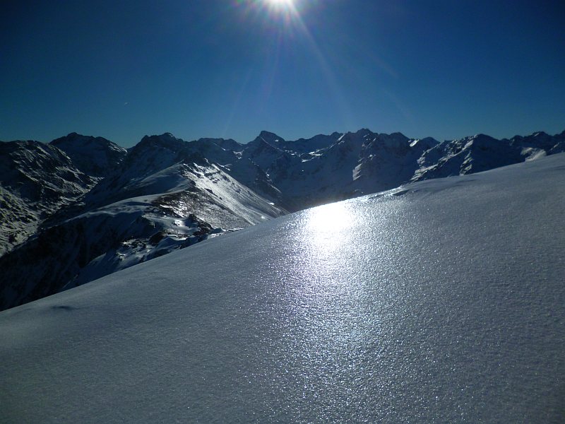 par le "Créneau d'Endron", ce beau couloir qui raye la face Nord (PD+)