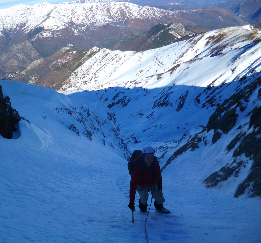 par le "Créneau d'Endron", ce beau couloir qui raye la face Nord (PD+)