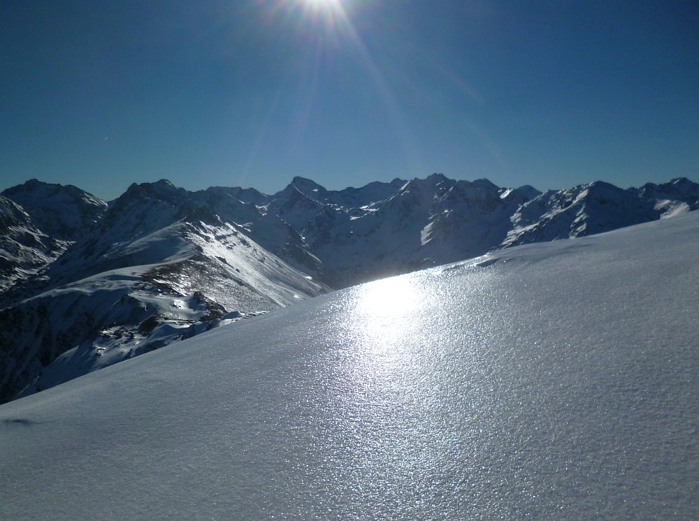 par le "Créneau d'Endron", ce beau couloir qui raye la face Nord (PD+)
