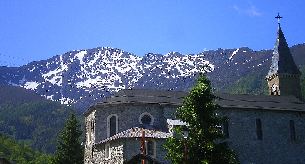 Pic Sarrasi, pique d'Endron, depuis le village de Goulier, au dessus de Vicdessos (Ariège, France sud, Pyrénées)